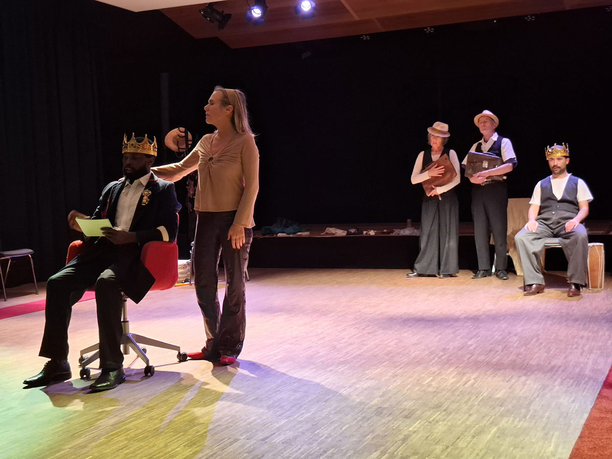 Interkulturelle Performance mit Musik nach Texten aus den Theaterstücken „König Ubu“ von Alfred Jarry und „King Baabu“ von Wole Soyinka.)